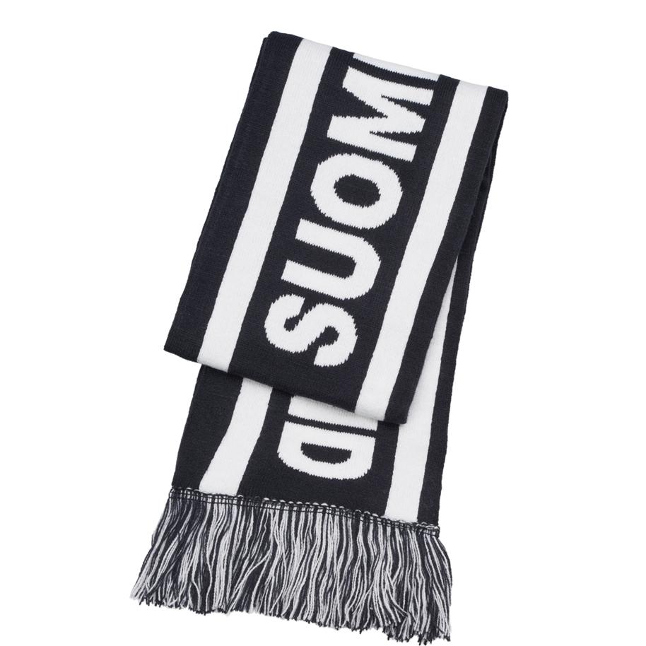 Tyylikäs Suomi Finland kaulahuivi jacquard neulotuilla teksteillä.