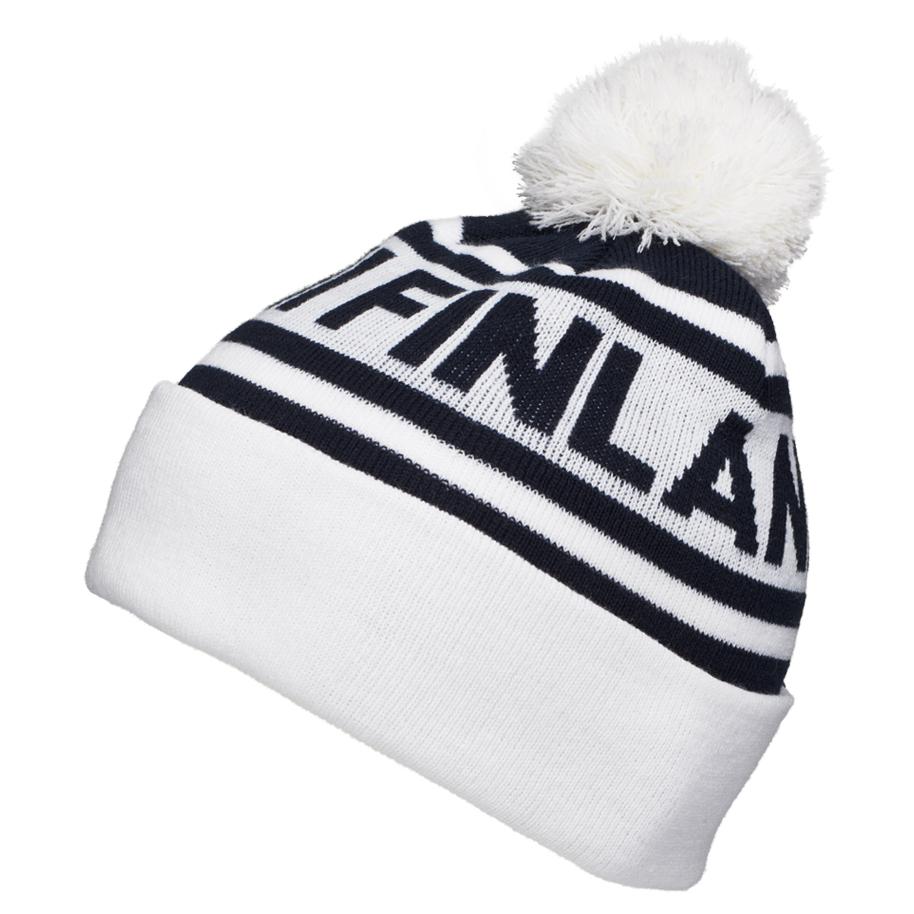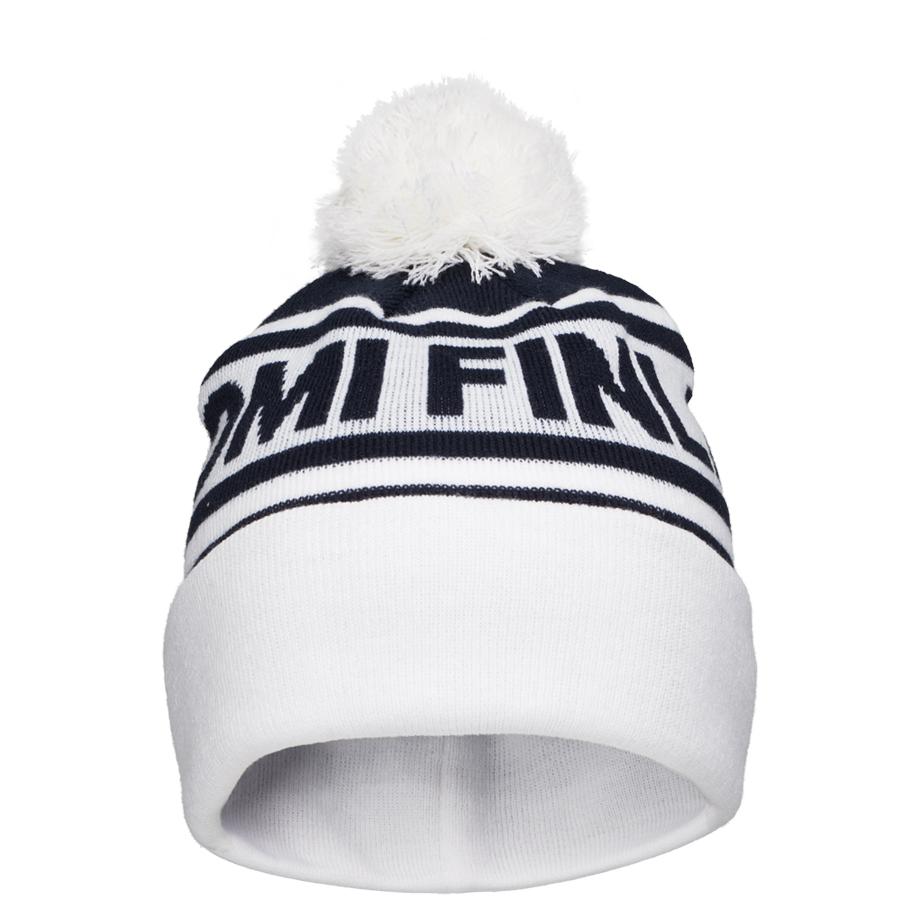 Klassinen tupsupipo jacquard neulotuilla suomiteksteillä. Täydellinen valinta esimerkiksi kisakatsomoon.