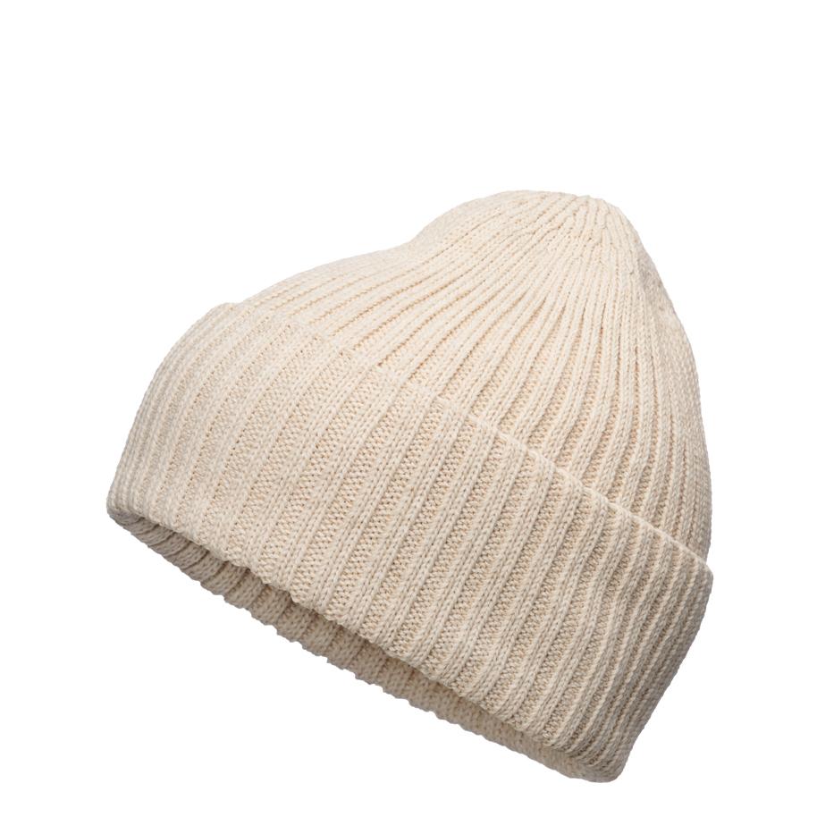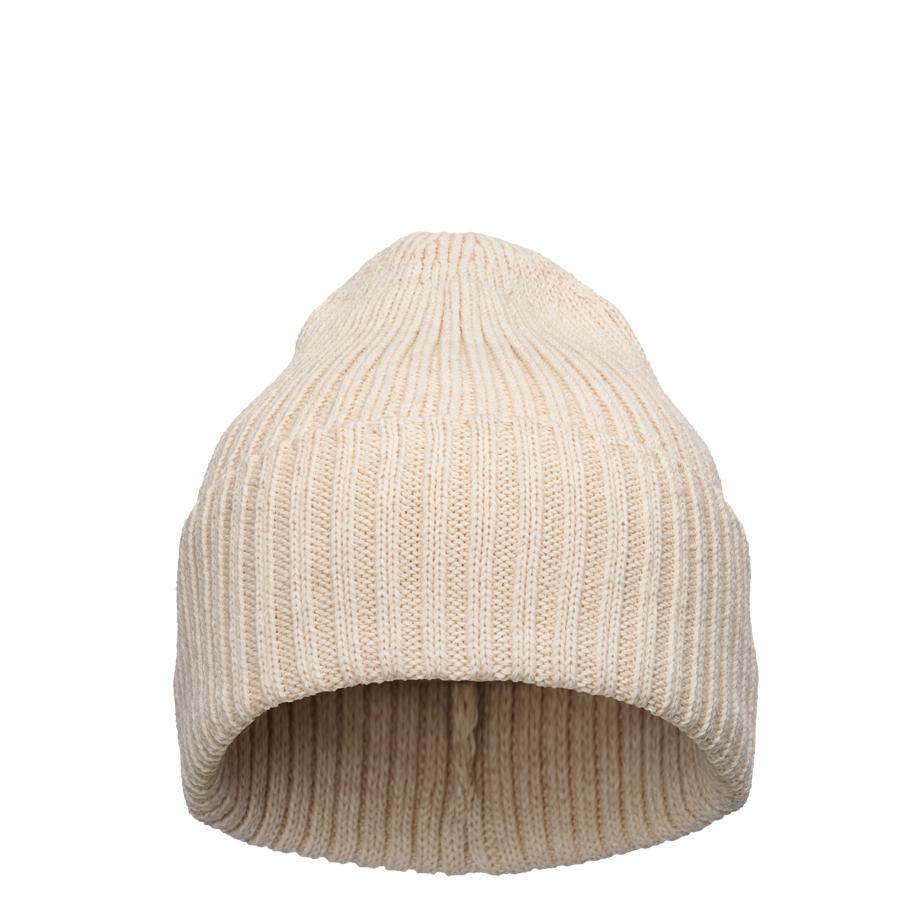 Euroopassa valmistettu ribbineuloksinen merinovillasekoitepipo käänteellä.