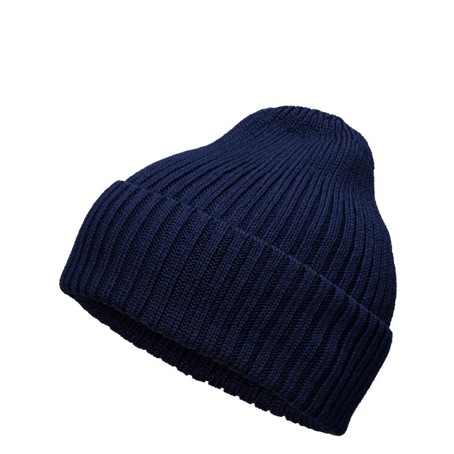 Euroopassa valmistettu ribbineuloksinen merinovillasekoitepipo käänteellä.
